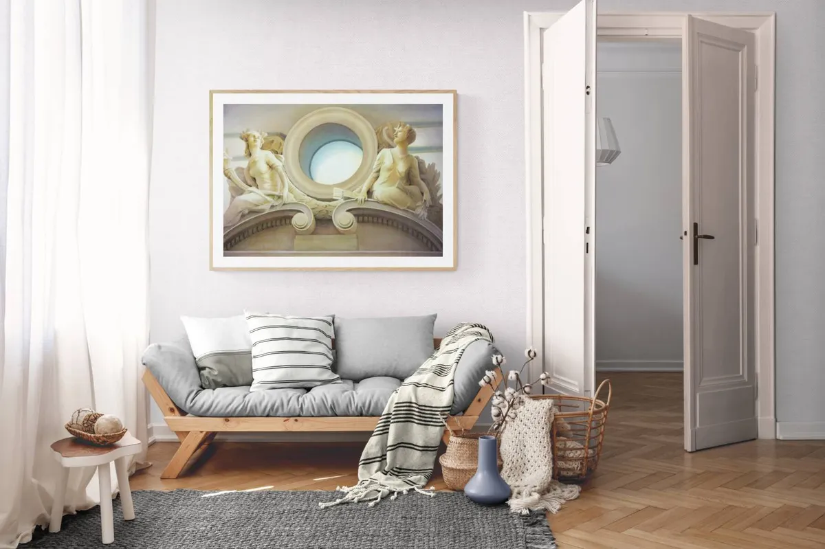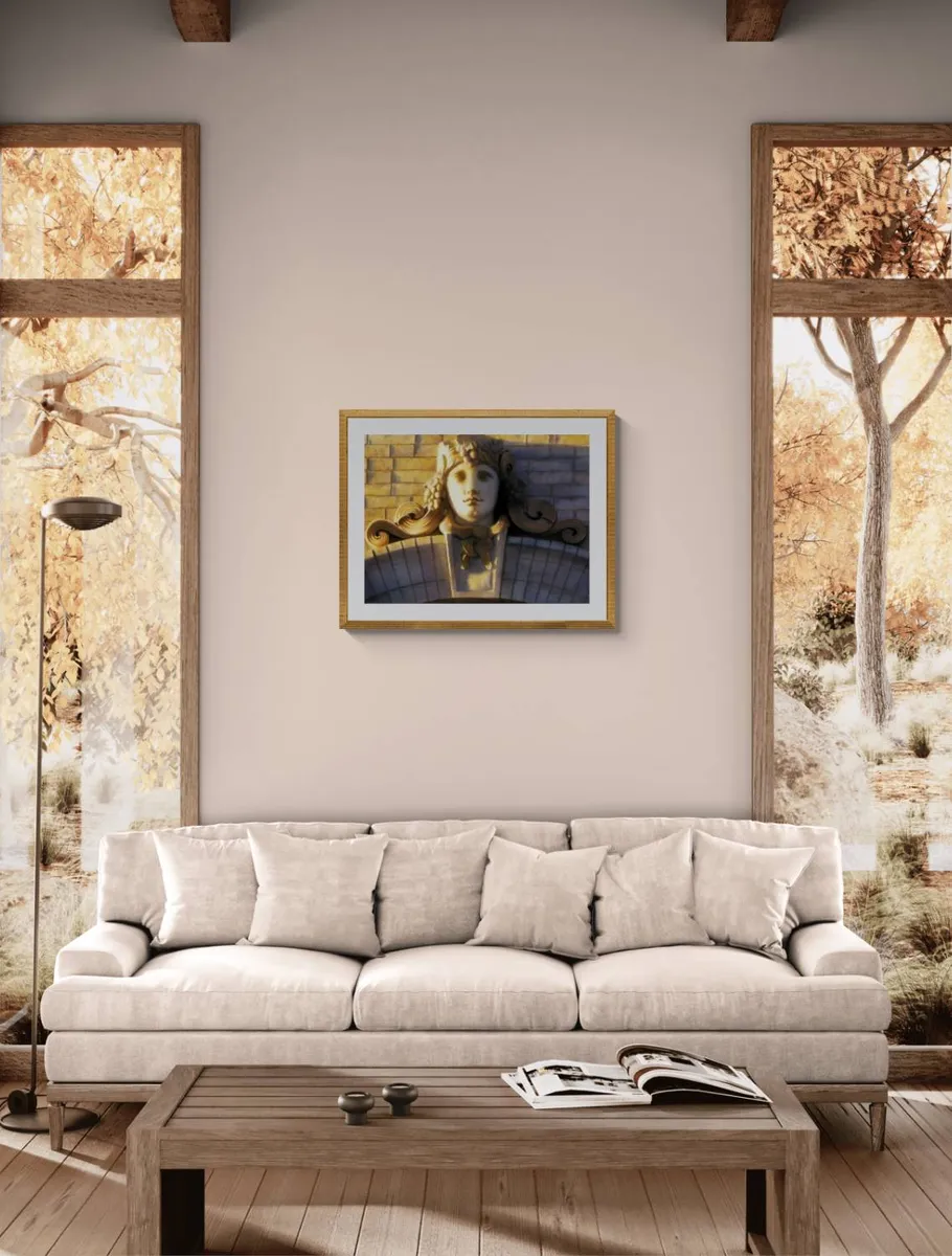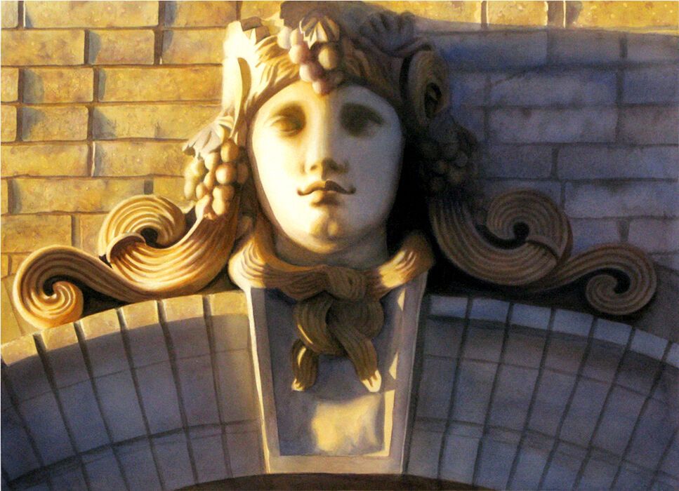 vThis captivating watercolor painting, "Sunset on 57th Street," captures a classical architectural ornament featuring a sculpted face adorned with flowing hair and decorative elements resembling leaves and grapes. The ornament from the historic 165 West 57th Street, a building steeped in the cultural heritage of Midtown Manhattan. This five-story structure, originally the Louis H. Chalif Normal School of Dancing headquarters, was designed by George A. and Henry Boehm and completed in 1916. The painting's use of light and shadow not only enhances the three-dimensional effect of the sculpted face but also adds a dramatic and emotive quality to the artwork. The ornate curves and detailed craftsmanship of the carving give it an elegant and timeless quality, capturing the essence of 57th Street's enduring charm. "Sunset on 57th Street" is a tribute to the enduring beauty and historical significance of 165 West 57th Street, capturing a moment of natural beauty against a backdrop of New York City's architectural evolution. This piece is perfect for those who appreciate the fusion of art, history, and architecture, offering a window into the past through the lens of a stunning sunset.